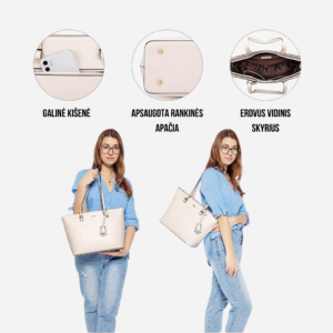 Ši stilinga rankinė puikiai tiks kelionėms, darbui ar kasdienai. Į rankinę galima susidėti visus reikalingus daiktus. Be to, ji atrodo ypač stilingai.