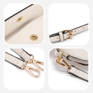 Rankinės apačioje yra keturi metaliniai spygliukai, kurie apsaugos rankinę nuo susidėvėjimo ir leis ją nešioti ilgai.